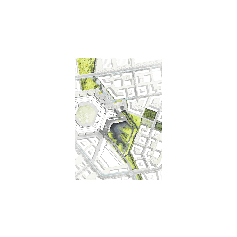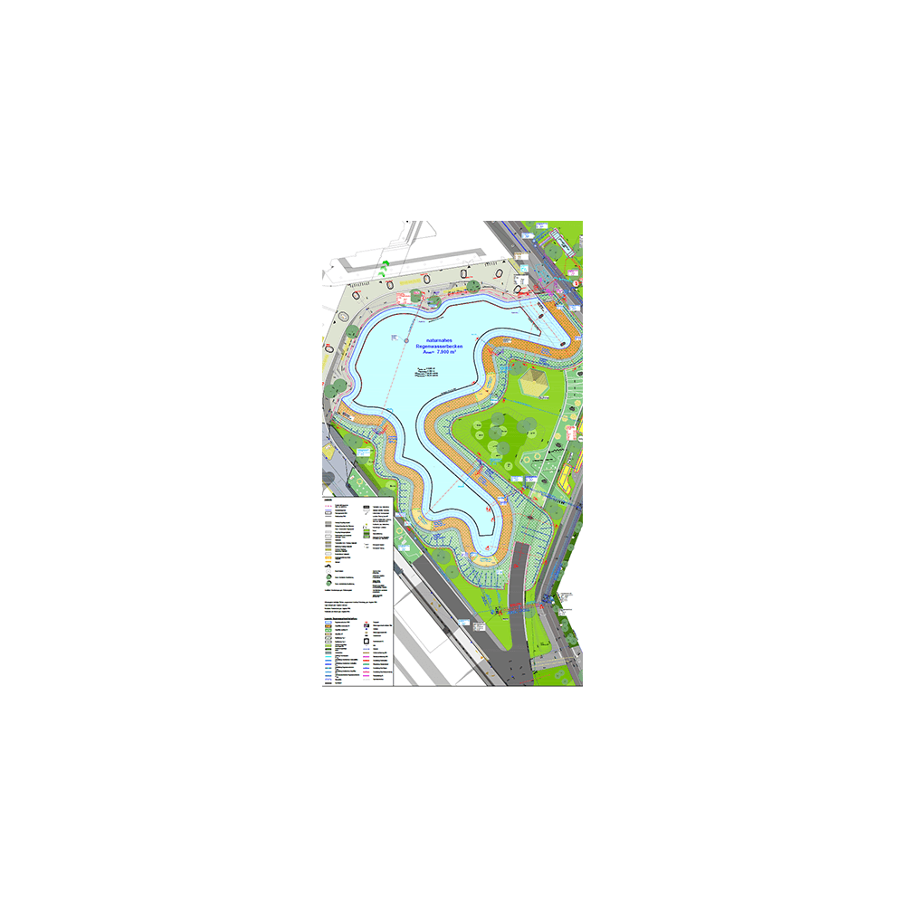 Stormwater treatment facility with a nature-based water basin (~7,900 m²)